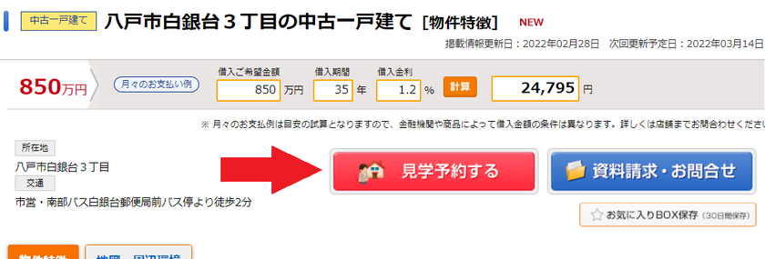 気になる物件のページの「見学予約する」ボタンから直接予約することもできます!👇👇