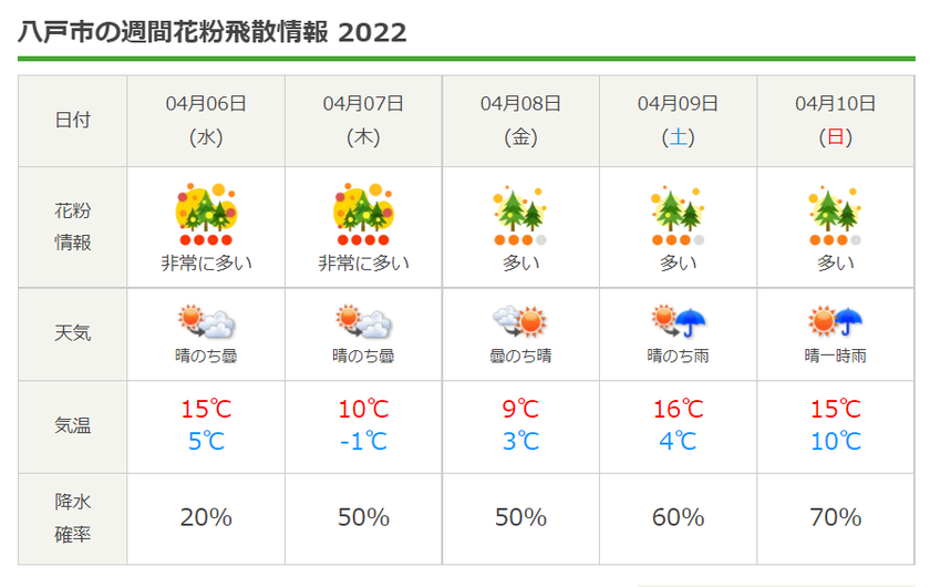 今週の花粉情報はこのようになっております。